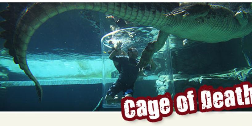 Operated by an over-head monorail and designed for 1 or 2 people per cage, the Cage of Death has you suspended above the crocs before being lowered into the pen to get an up close and personal look at these amazing reptiles.