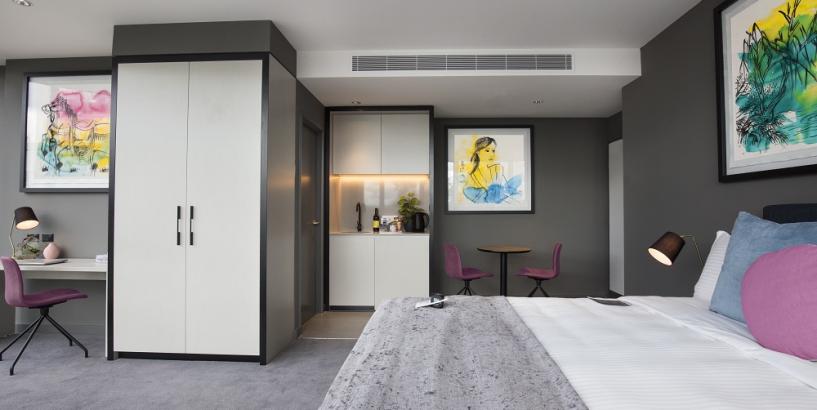 Relax and have fun, Zhong Chen is the joyous inspiration behind The Chen. Providing contemporary accommodation in Melbourne's bergeoning Box Hill, The Chen has been crafted with the unique art inspired touch points that Art Series Hotels are celebrated for. Featuring 100 intelligently designed suites that are complemented with the vibrant works of Chinese born, Australian Artist, Zhong Chen. The Chen Plays home to local and interstate travellers looking for a stay for work or play. Featuring spectacular views of Melbourne's CBD and surrounding suburbs from the impressive rooftop pool and entertainment deck and all the while only being a hop, skip and jump to Box Hill's exciting dining precinct. Trams are also at the doorsteps ready to whisk you away if you wish to explore further afield.