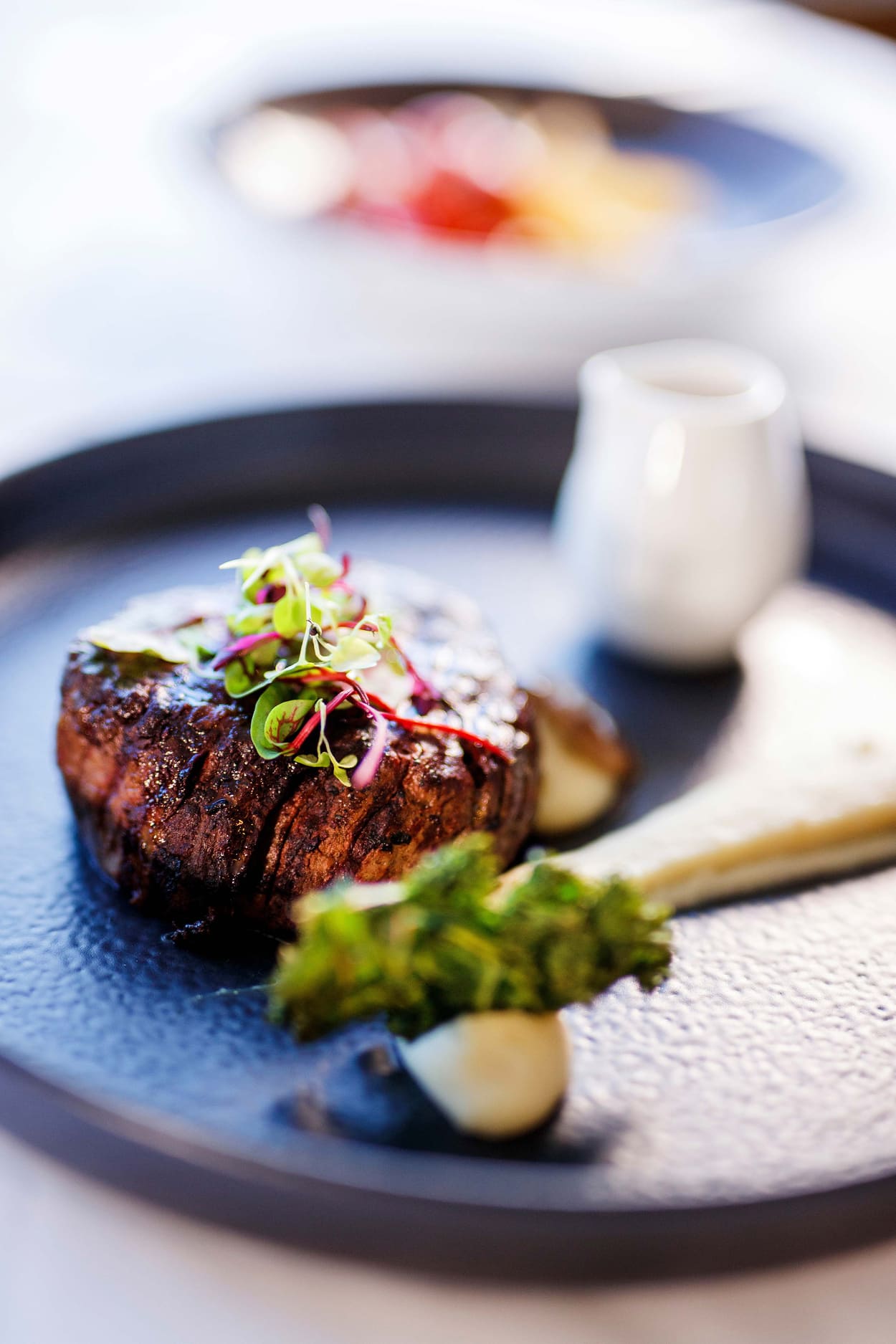 Australian tenderloin fillet served with mashed potatoes, baby beets and veal jus (GF available)