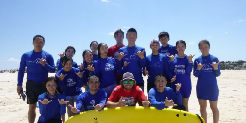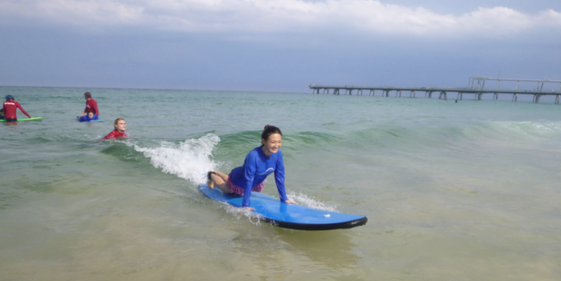 Our 2-hours group experience takes place in waist deep water with only 6 participants for each fully qualified surf instructor/surf life savers (children’s ratio is only 4 per instructor). Our instructors are very patient, are in the water with you the entire lesson and assist each person one by one until you are confident, ensuring the lesson fun, easy and fun. We offer a free shuttle from Surfers Paradise and all equipment is included- Surf board, full cover sun suit for summer or wet suit for the winter and Mandarin speaking instructors also available by appointment.