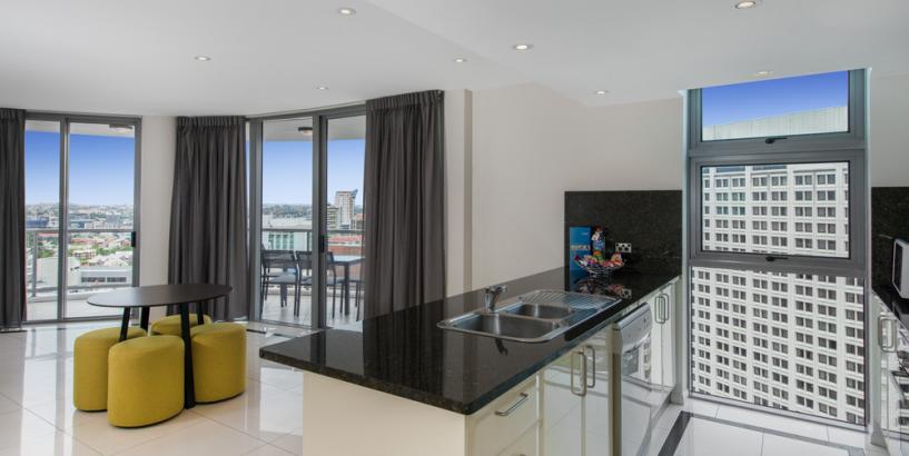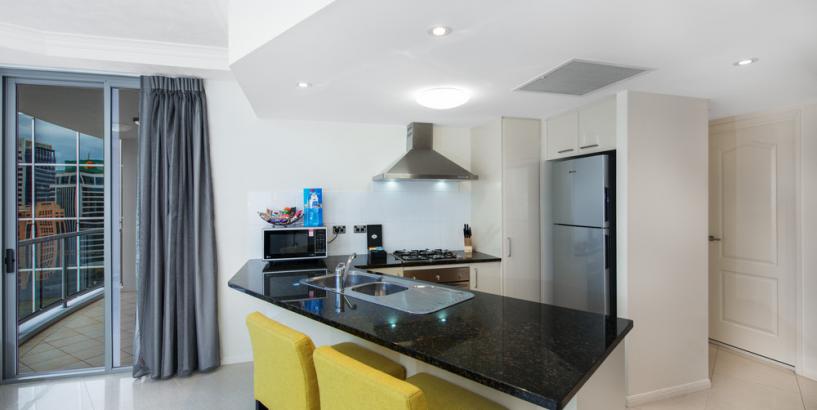 In your spacious apartment you'll find a fully equipped kitchen with everything you need to prepare a gourmet meal. When dinner's over, relax in the comfort of your living area, complete with a LCD TV and a range of Foxtel channels. Take in the city-scape views from your balcony and never stress about a thing in these well-appointed Brisbane apartments that put you in the centre of the city's business and leisure activities.