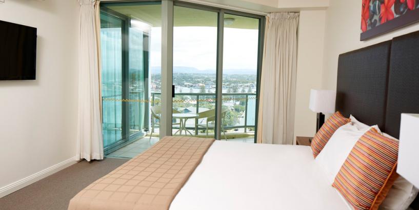 Our One Bedroom Ocean View Apartment are perfect for singles and couples looking for that added Gold Coast feature of an ocean view. Featuring a private balcony with breathtaking views over the Pacific Ocean, One bedroom Ocean View Apartments are the perfect place to put your feet up and relax after a busy day out and about in Surfers Paradise. Also featuring a full kitchen, laundry and comfortable living and dining area, our one bedroom ocean view apartments have TV with Foxtel and in-house movies and in-room internet access (fees apply).