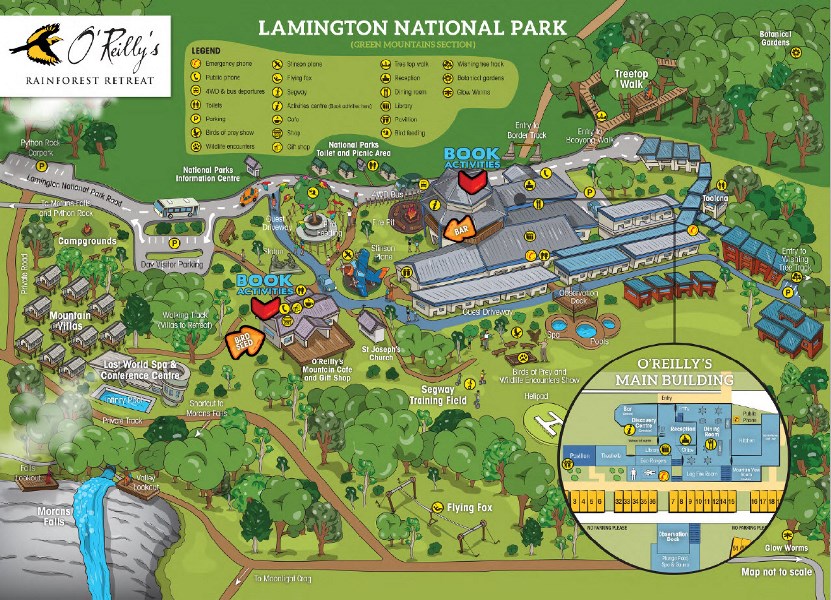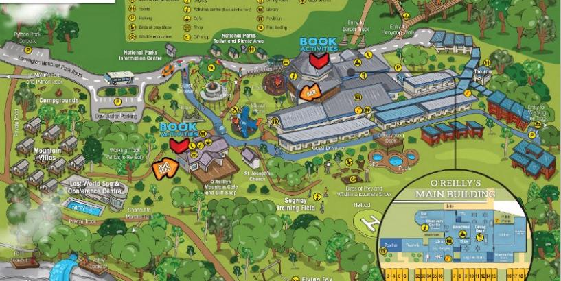 Admire the magnificent surrounds and breathtaking views of Lamington National Park while enjoying traditional Australian service, great food, O'Reilly's wine and unique accommodation. The spacious location comprises 66 rainforest retreat accommodation rooms, free from distractions of televisions and telephones and 48 self-contained luxurious eco villas set within 20,000ha of rainforest.