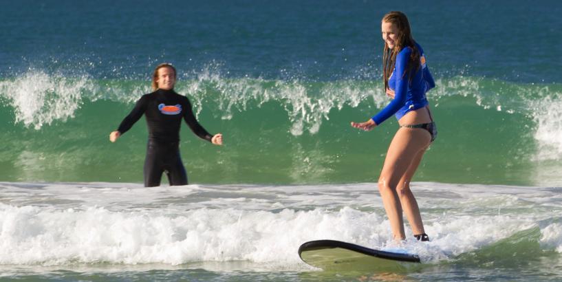 FIT customers can book a 2hour surf lesson every day What’s Included Long Sleeve Sun Shirt (or wetsuits in cold weather) and Sunscreen Soft beginner surfboard with leg rope 2 Hours of quality instruction Leave all personal items safely in our shop Instructor Qualifications and Ratios All Go Ride A Wave instructors have the following Qualifications Surf Life Saving Bronze Medallion Advanced Resuscitation Techniques Senior First Aid Level 1 Surf Coach Blue Card – Working with Children Maximum Ratio is 1 Instructor to 7 students but is usually better. For any customers who are nervous in the water we begin with 1 on 1 where the instructor is helping individuals for the first few waves until they build their confidence to try on their own with the instructor nearby to help if needed. What you need to bring Towel, Bathers/Boardshorts, Water to drink, Hat and Sunglasses, Camera Shop Address: 26A Cavill Ave, Surfers Paradise Queensland 4217 (next to Hungry Jacks)
