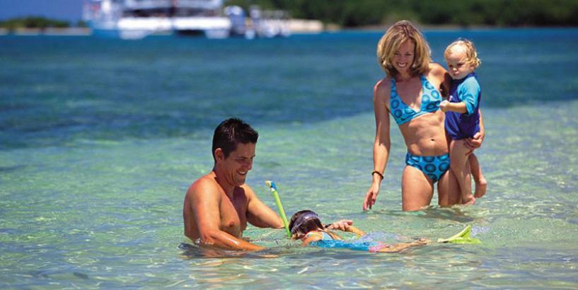 A snorkelling demonstration is conducted during the journey to Low Isles.