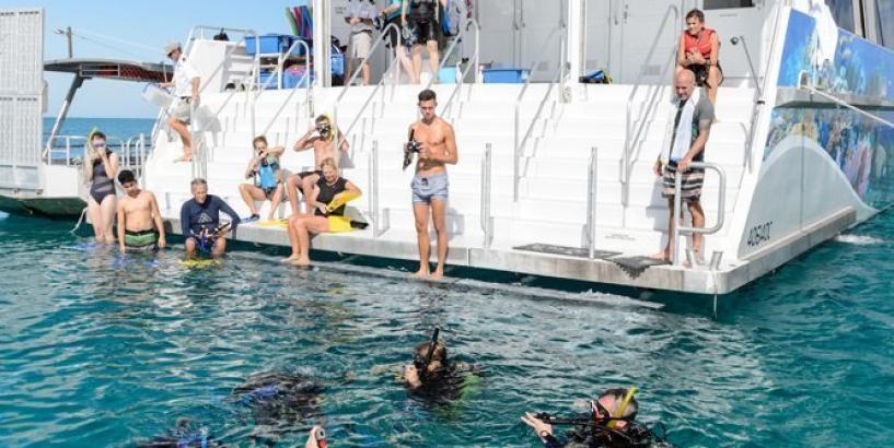 This tour departs from Bundaberg which is 1.5 hours from Agnes Water & The town of 1770. We recommend this service provider due to the quality & size of the vessel which can travel in most weather conditions. Self drive and return resort transfers are available at $40 per adult & $20 per child, infants FOC. Infant FOC (0-3) Child (4-14)